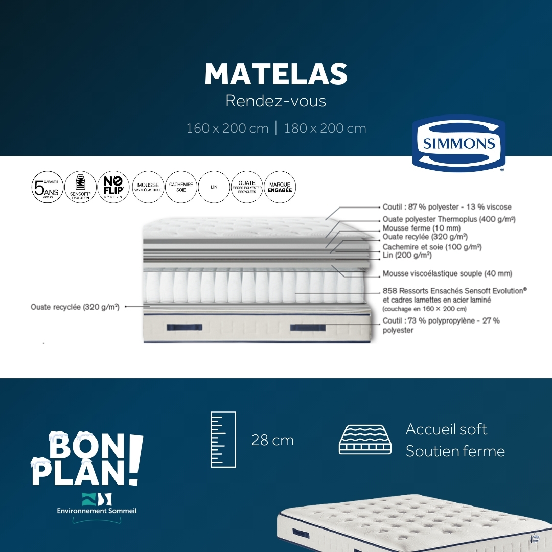 . Matelas de stock disponible immédiatement en 90 x 200, 140 x 200, 160 x 200 et 180 x 200.